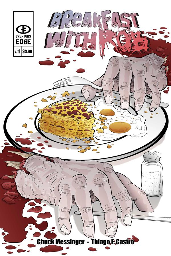 Breakfast with Rob written by Chuck Messinger, art by Thiago F. Castro. I like the premise of this comic, a lot. The zombie apocalypse has happened, and no one knows it yet. You never find out what caused it. It just happens. And the recently deceased go through the motions of living for awhile, like, say, meeting their old buddy for their traditional breakfast at a local diner, before you really know what’s going on. I like that you never know what caused it, it just is. Because, let’s face it, in spite of what every zombie movie in the world says, we don’t know exactly how things like the flu and HIV came into being. I doubt we’d be able to sort out a plague that consumes nearly everyone it contacts in such a short time. I also like that the protagonist isn’t a “hero.” He’s a guy, faced with a horrific situation, and he reacts like a real person. He doesn’t immediately come up with a brilliant plan to save himself and everyone else. The writing is solid, with believable dialog, though most of the dialog is the protagonist’s inner monologue. The art is not real exciting to me, but I do love the decision to do the comic in black and white, with red being the only color in the whole comic, whether it’s blood or ketchup.