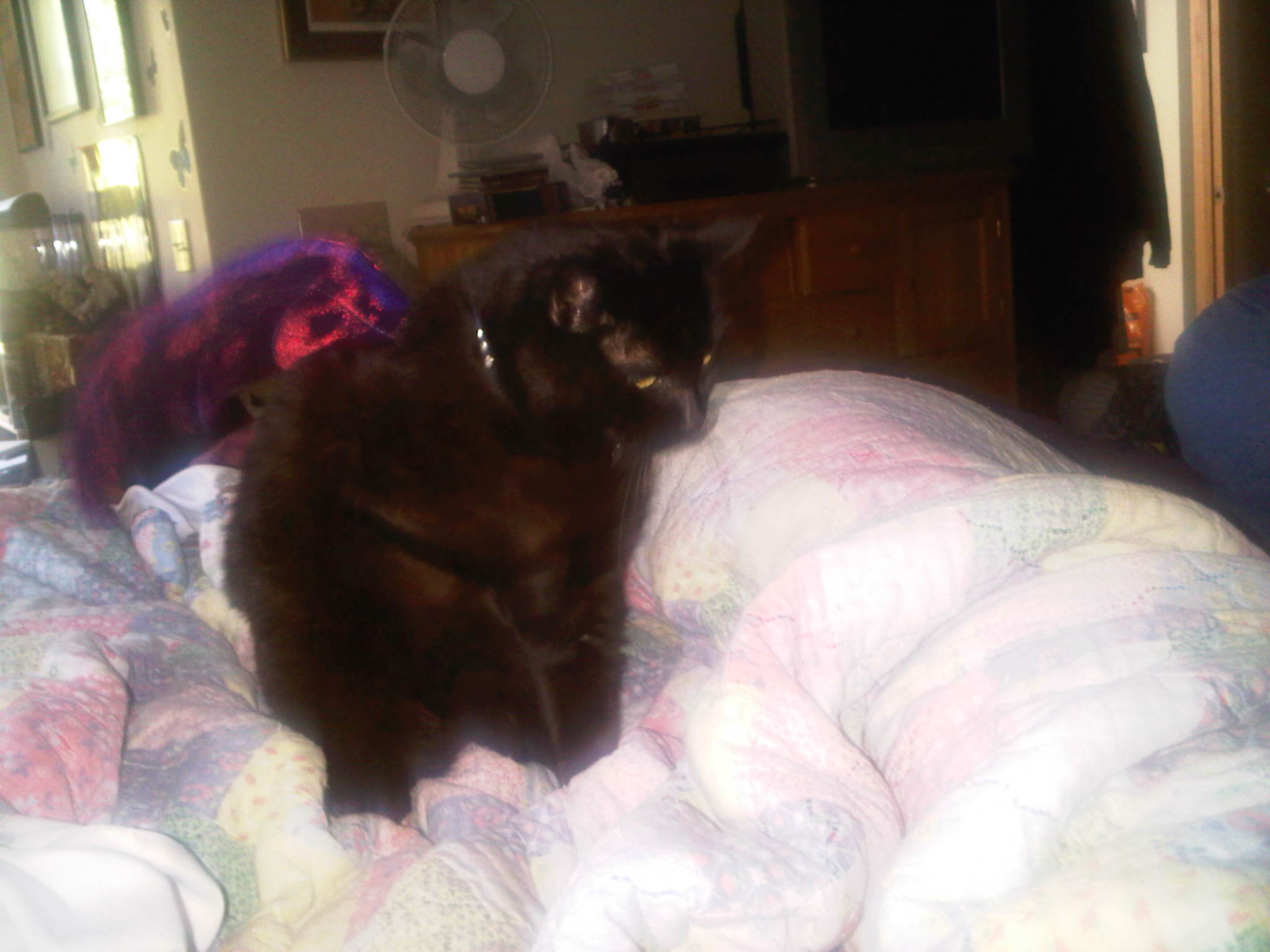 We had the roomies and a cat sitter checking on her, and apparently she was eating up until Monday. Tuesday we took her to the vet and the vet said that she had lumps in her abdomen that were probably cancer. And that we were making the right decision.