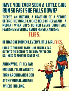 “Have you ever seen a little girl run so fast she falls down? There’s an instant, a fraction of a second before the world catches hold of her again… A moment when she’s outrun every doubt and fear she’s ever had about herself and she flies. In that one moment, every little girl flies.”